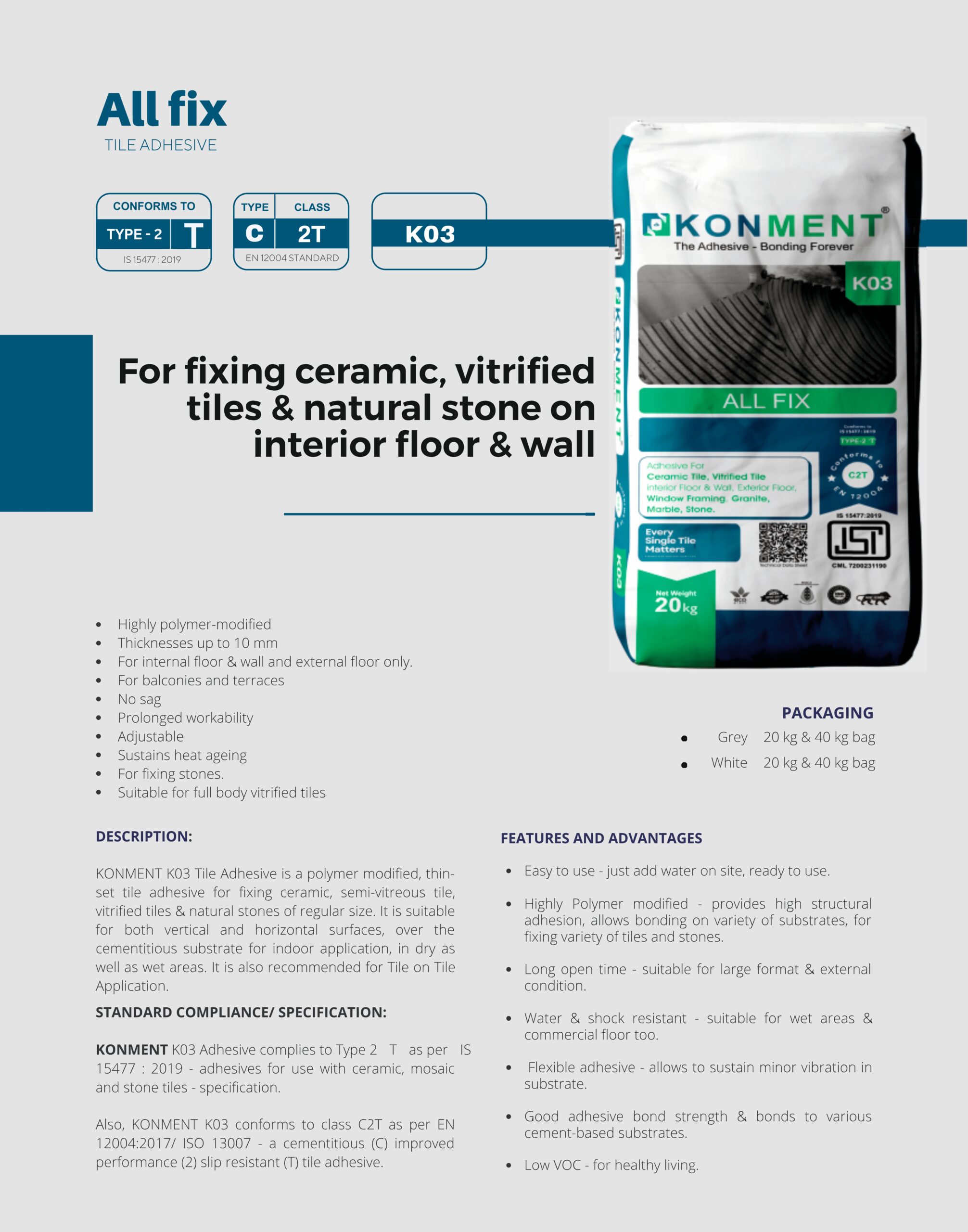 - For internal floor & wall and external floor only.