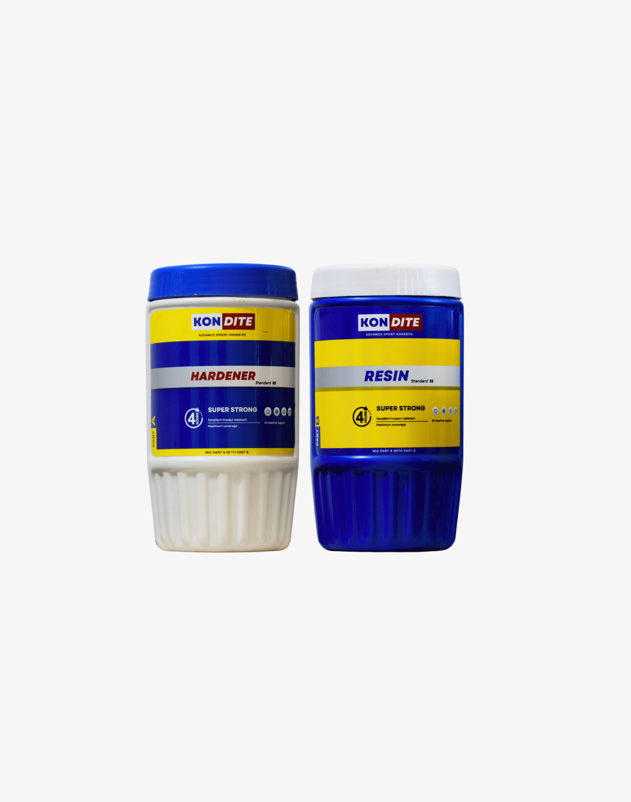- Surfaces must be clean, dry, and free from oil, wax and paint. Roughen smooth surfaces for better adhesion by sandblastinig or sanding with emery cloth. Wash glass and cerarnic surfaces with soap and water then rinse and let dry. Pre-fit parts to be joined. Squeeze equal volume of material from both part-A & part-B. Mix resin and harderier for one minute thoroughly and then apply as per requirement. Clamp both the surfaces for 4 hrs. Leave it for 24 hours to achieve optimum strength.